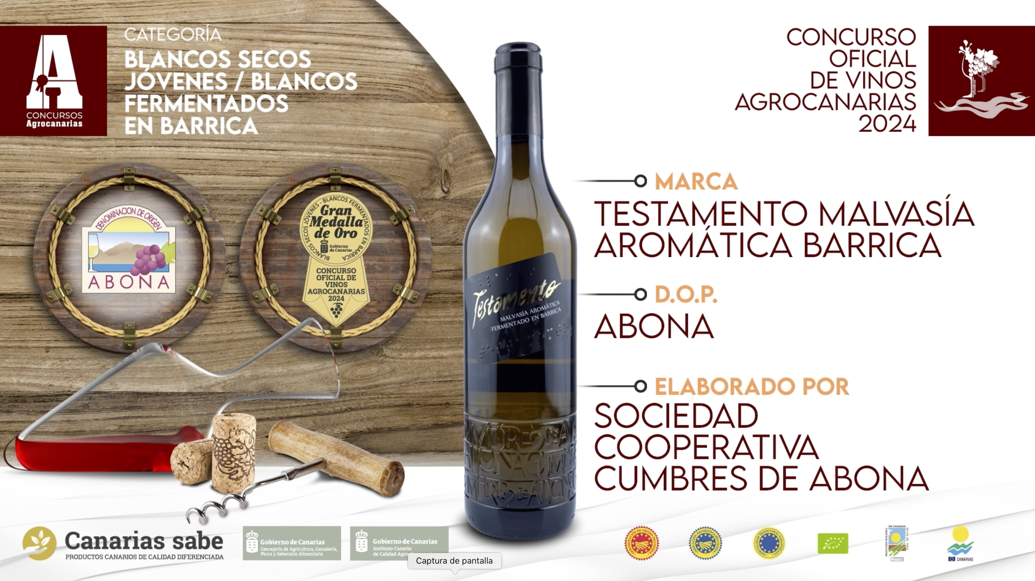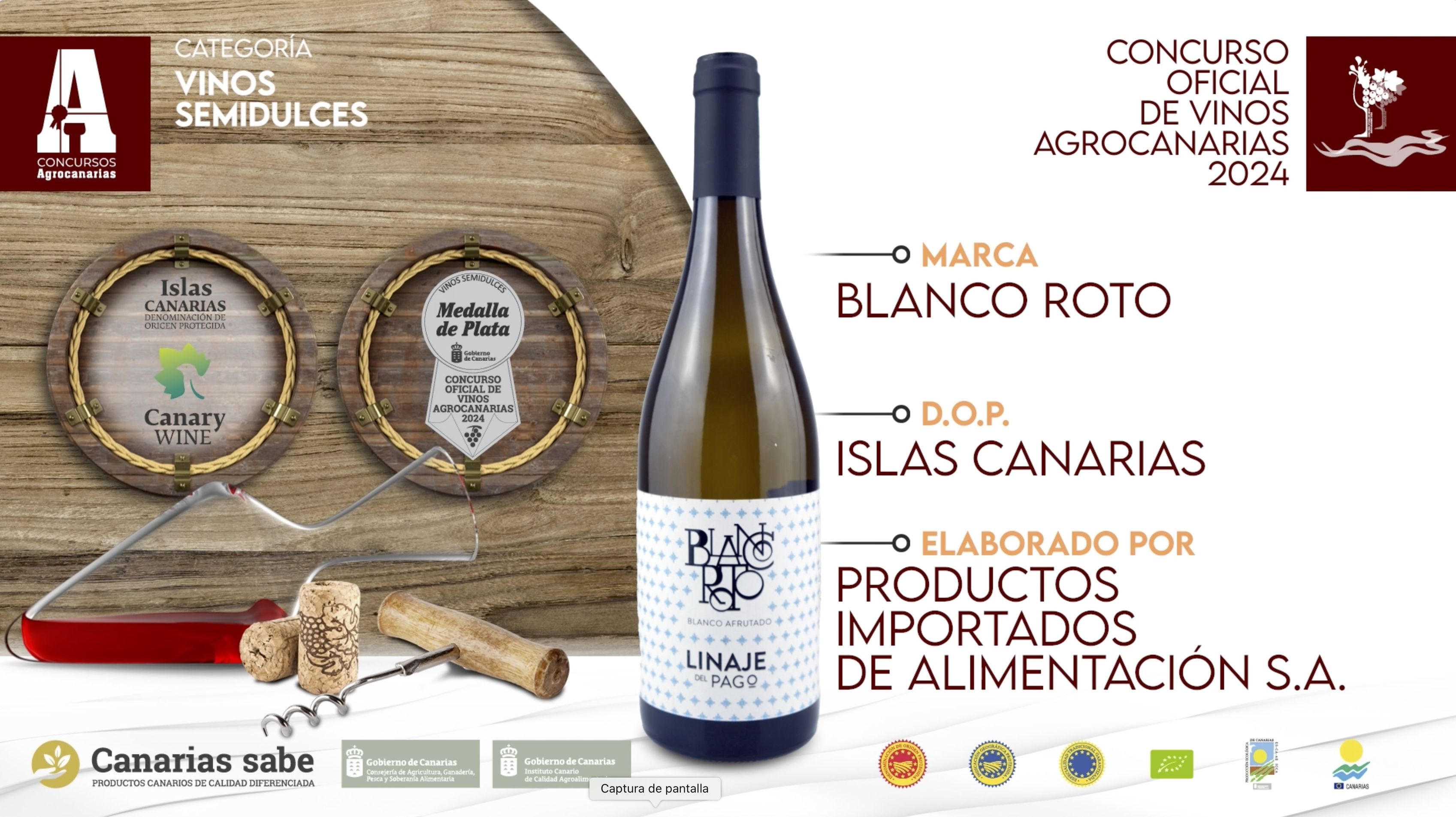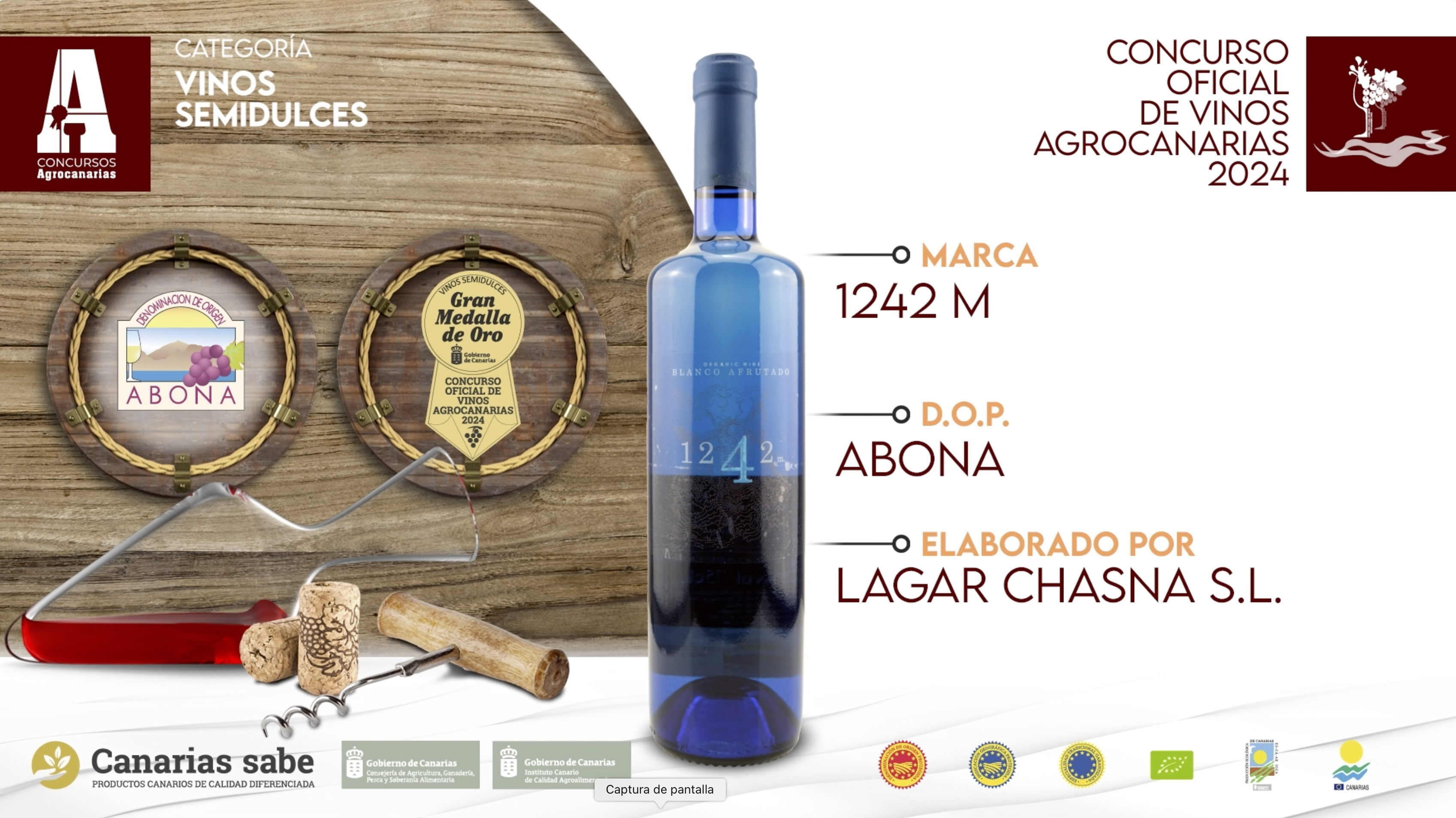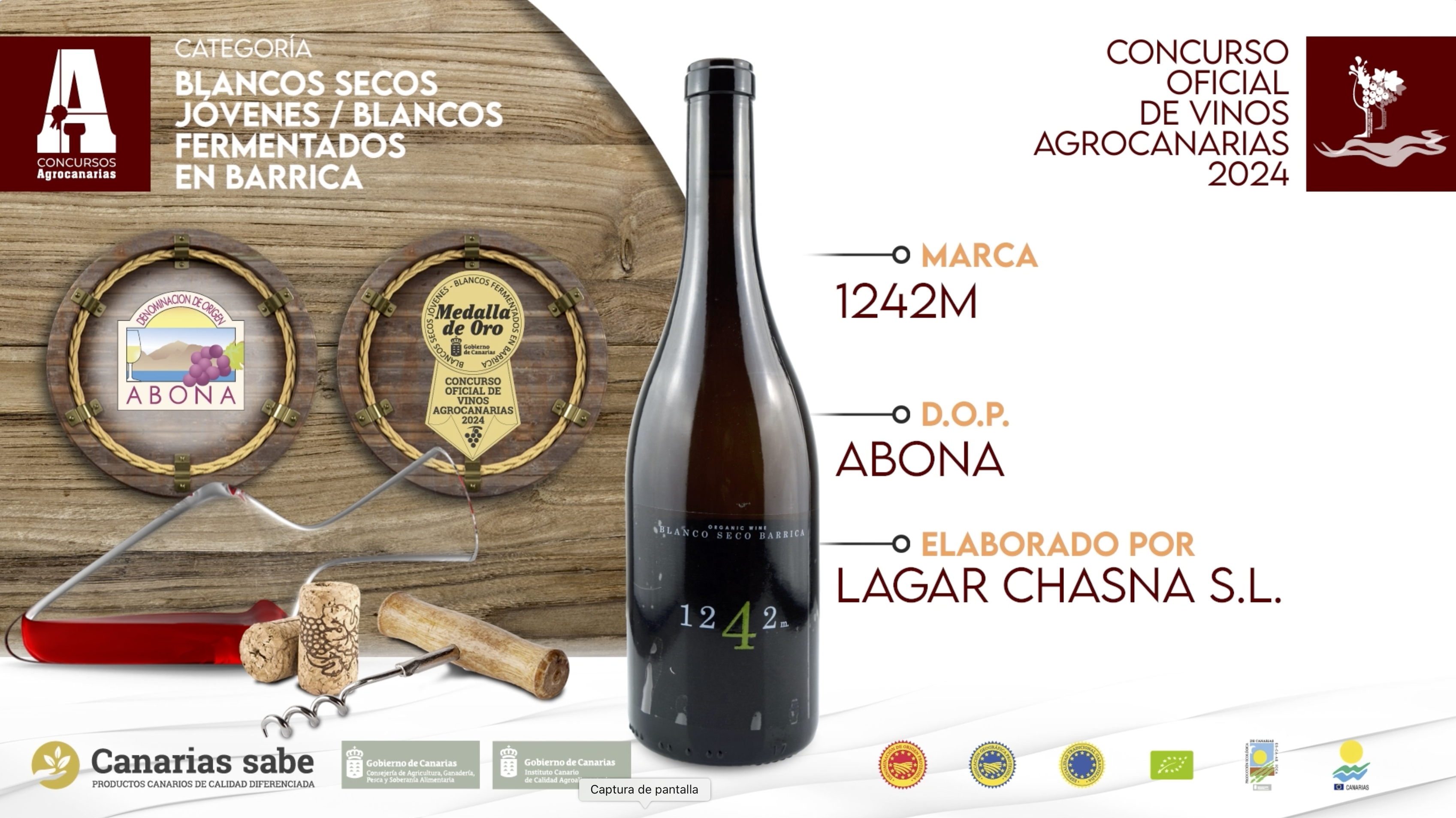 Finalizado el Concurso Oficial de Vinos Agrocanarias 2024, en la que de entre 230 muestras presentadas, pasarona a la final 24 vinos blancos secos jóvenes o vinos blancos fermentados en barrica. 17 vinos tintos jóvenes o tintos barrica 7 vinos semisecos 8 vinos semidulces 8 vinos dulces 4 vinos malvasías dulces 4 vinos rosados secos 1 vino de tea 4 vinos espumosos 7 vinos de crianza. La celebración del certamen tuvo lugar en Lanzarote, donde todos estos Vinos del Archipiélago compitieron por obtener la distinción de Mejor Vino de las Islas.