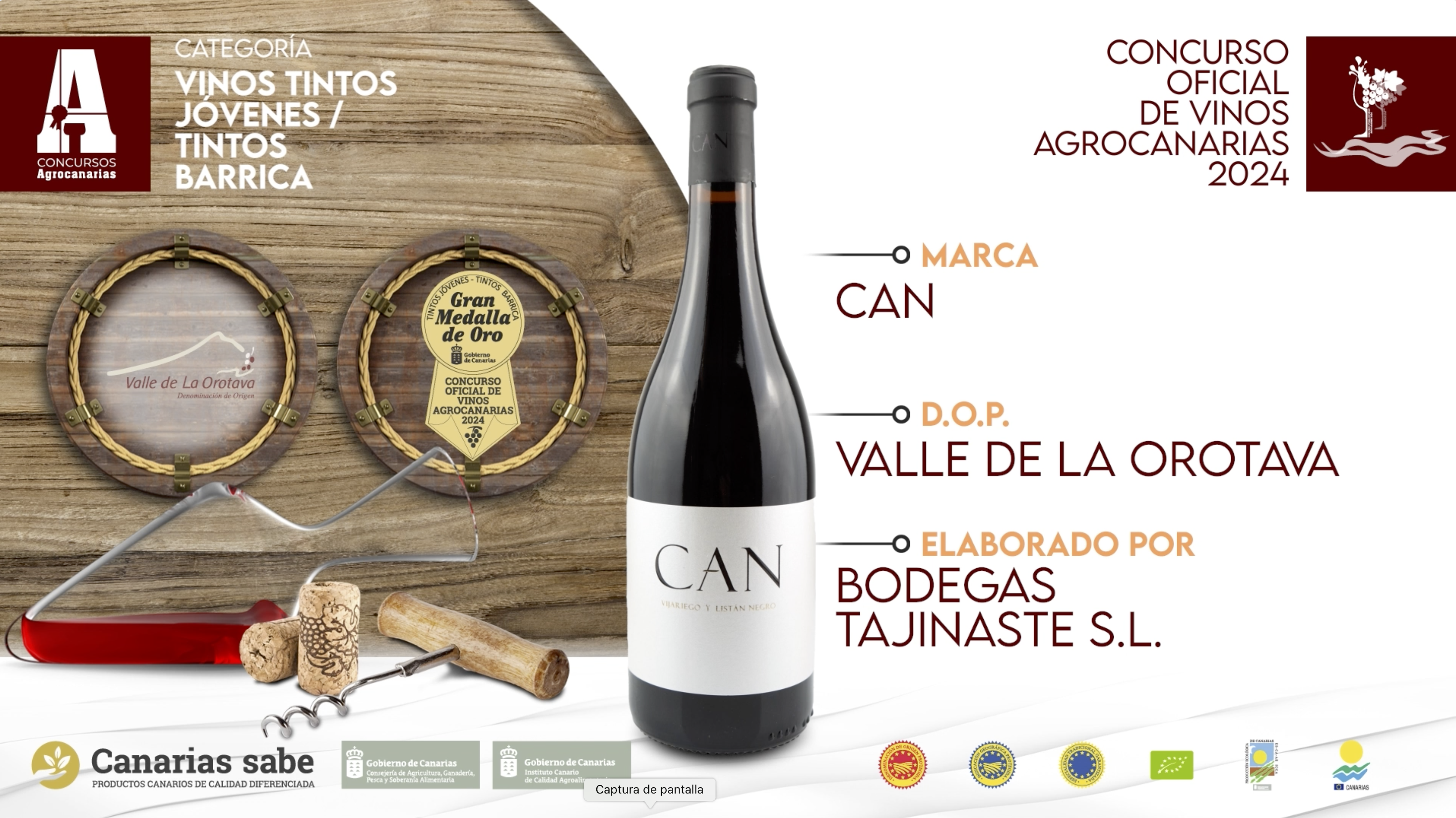 Mejor vino de Canarias, que será el que tenga máxima puntuación entre todos los seleccionados a premios, siempre que sea superior a 92 puntos sobre 100.